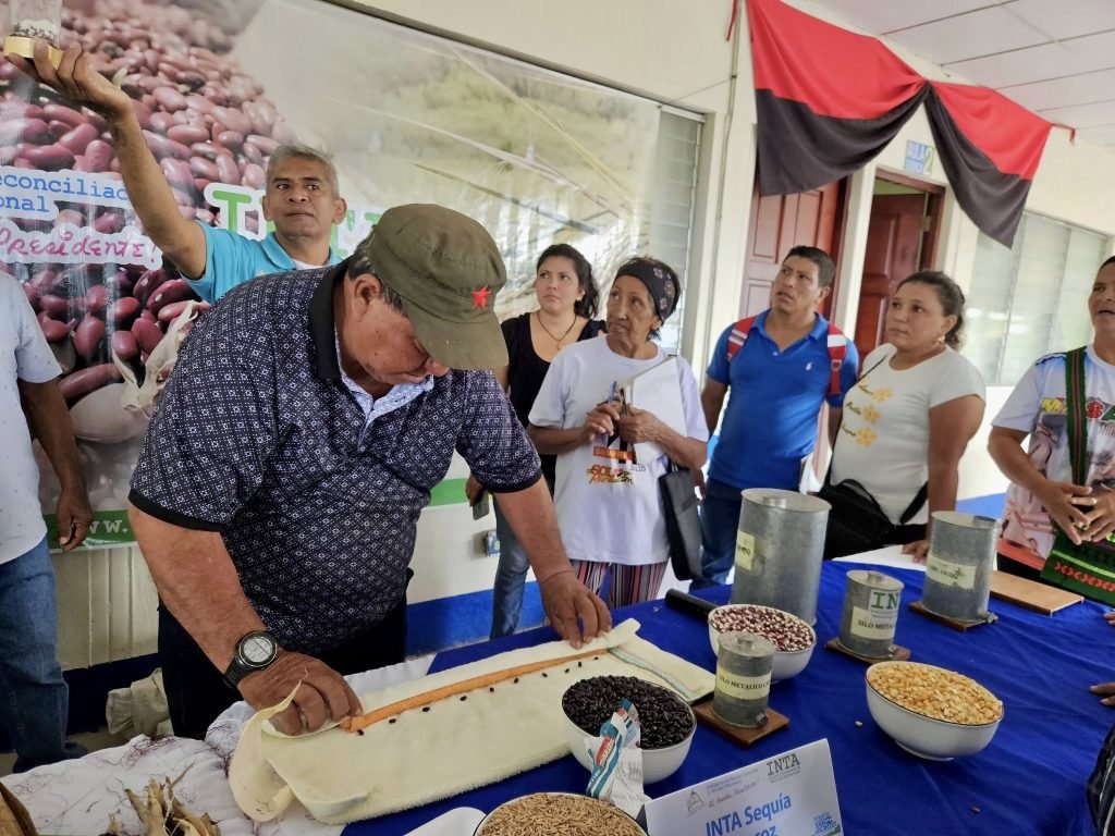 El protagonista Andrés Aguirre, productor del municipio La Paz de Carazo, expresó “Este año sembramos maíz, arroz, frijol, hasta maní; con el INTA hemos recibido seguimiento y asesoramiento técnico para el uso de variedades mejoradas desde la siembra hasta la cosecha, lo que me ha permitido obtener buenos rendimientos”.