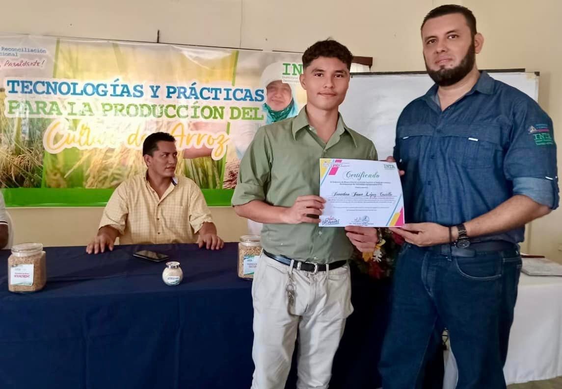 Jóvenes universitarios y productores del departamento de #Matagalpa, culminan exitosamente el 1er Curso de Manejo Integrado del Cultivo del Arroz impartido por #INTA a través de nuestro Centro Nacional de Experimentación en Arroz Comandante Edén Pastora Gómez.