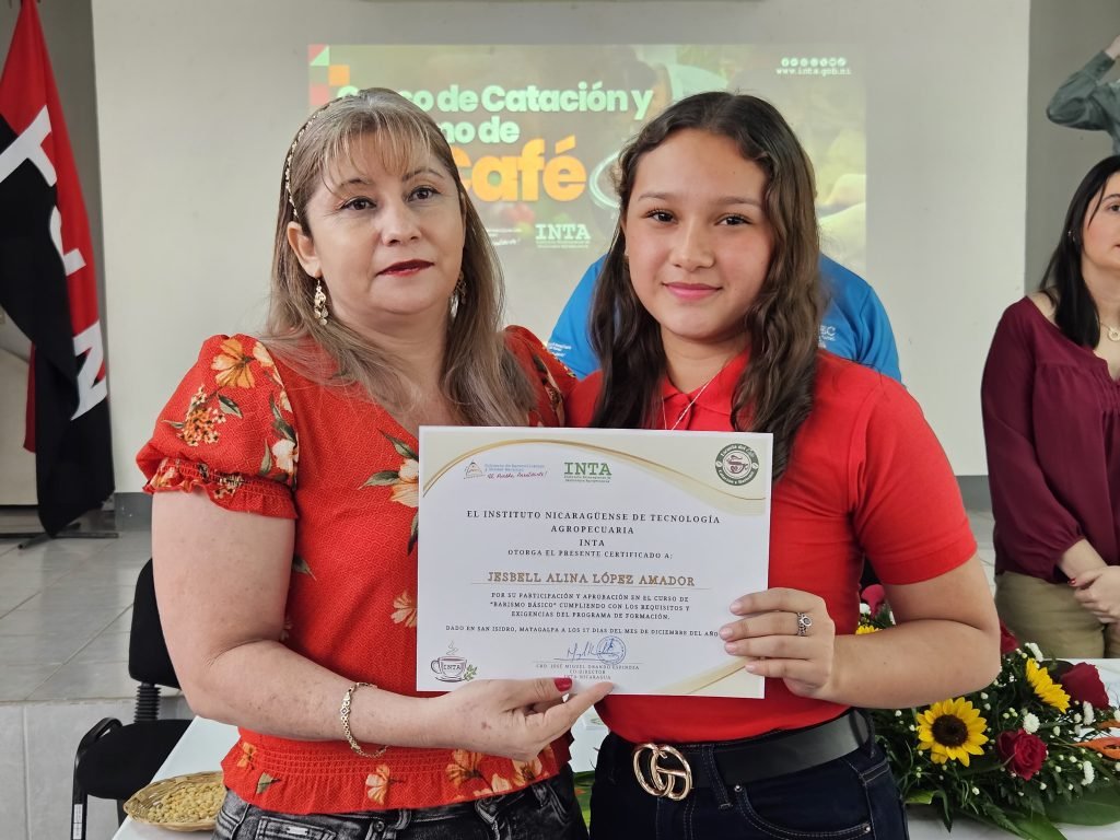 El Instituto Nicaragüense de Tecnología Agropecuaria – INTA, entregó certificados a jóvenes que culminaron exitosamente el Curso de Catación y Barismo de Café de la Escuela de Catación y Barismo de Cafés Especiales del Centro de Desarrollo de Tecnologías Agropecuarias Comandante Hugo Chávez Frías, ubicado en el municipio de San Isidro, departamento de Matagalpa, con la participación de 38 productores y productoras de la zona.