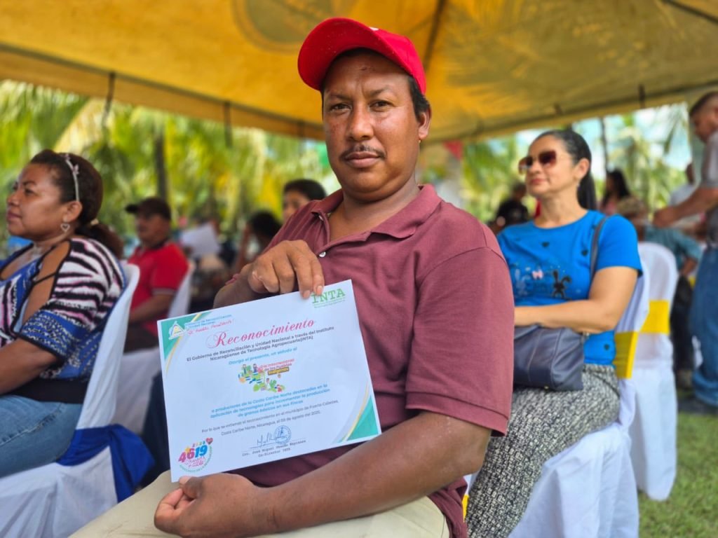 En saludo al Día Internacional de los Pueblos Indígenas el #INTA realizó desde el municipio de Puerto Cabezas, la entrega de reconocimientos a productores destacados en la aplicación de tecnologías para incrementar la producción en el cultivo de arroz de secano en la Costa Caribe Norte.
