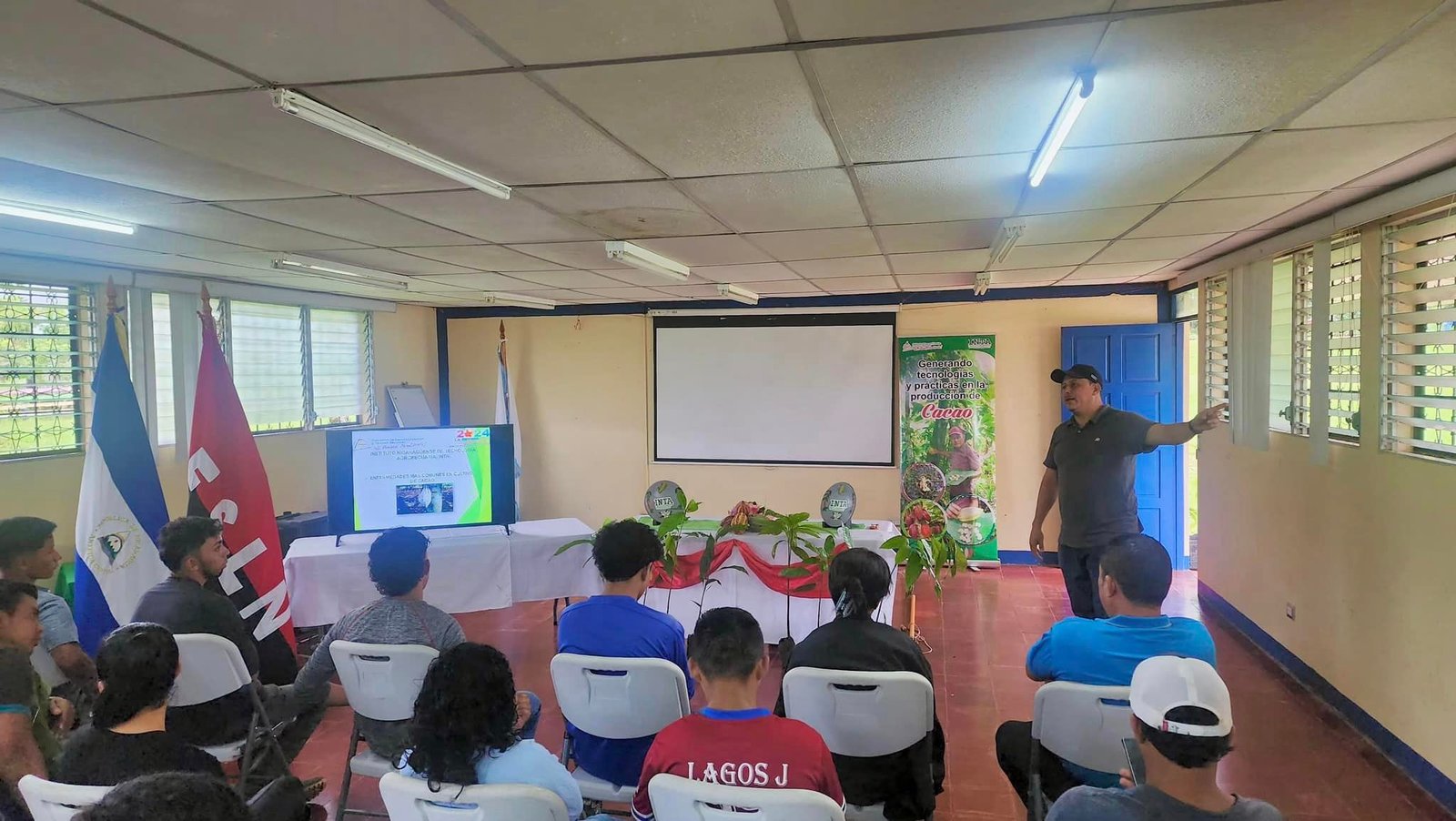 Realizamos el foro sobre identificación y control de las principales enfermedades que afectan la producción y rendimientos en el cultivo de cacao, con la participación de productores de las comunidades Yolaina, El Escobín y El Serrano en el Centro Tecnológico General Augusto C. Sandino, ubicado en el municipio de Nueva Guinea.