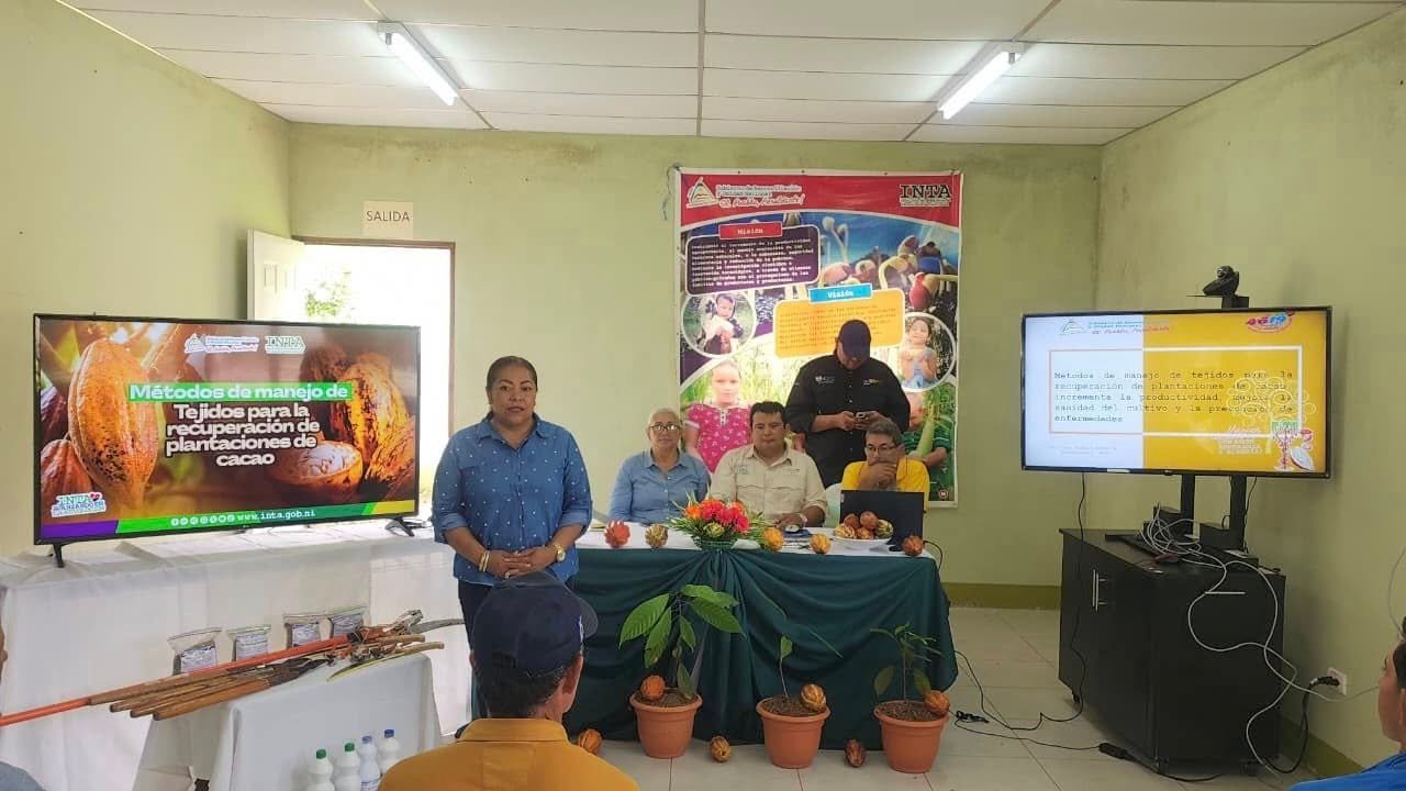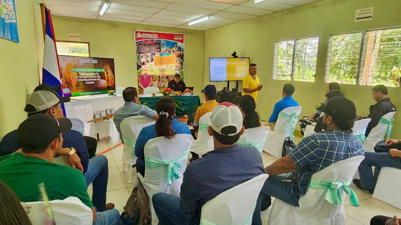 En el Centro de Desarrollo de Tecnologías Agropecuarias Héroes de la Columna Jacinto Hernández, ubicado en Nueva Guinea, se realizó Presentación de Métodos de Poda para la Recuperación de Plantaciones de Cacao, dirigido a productores con el fin de incrementar la producción, mejorar la sanidad del cultivo y la prevención de enfermedades.