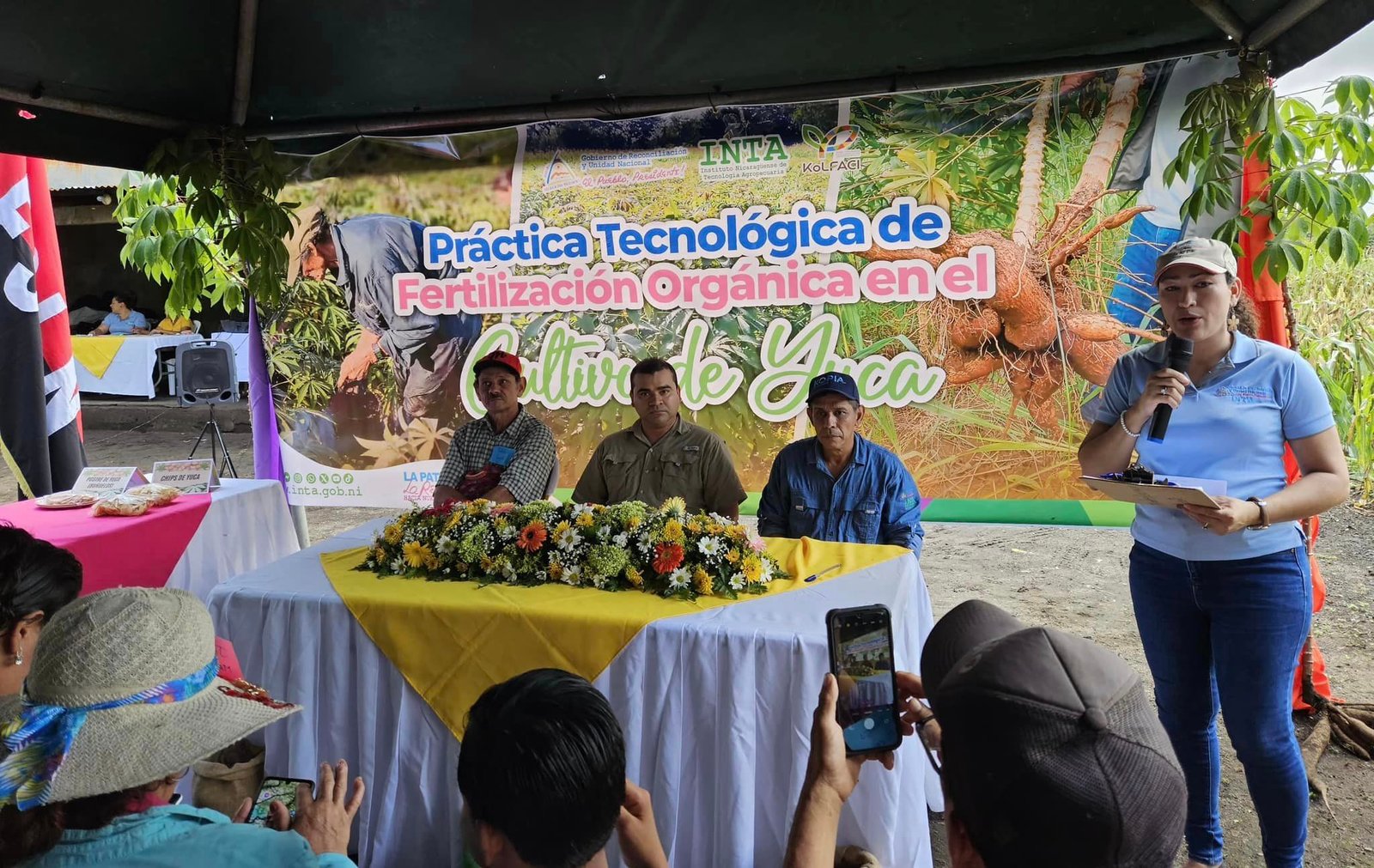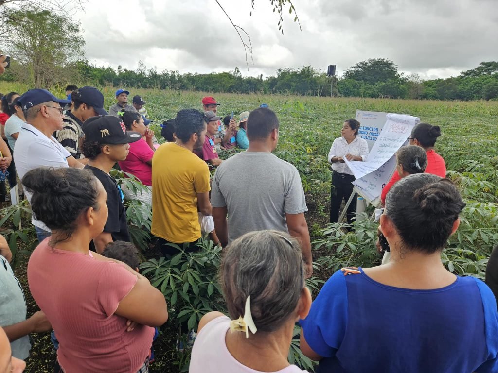 En la Comunidad Santa Rosa, ubicada en el municipio de Quezalguaque, departamento de León, realizamos la Presentación de una Nueva Práctica Tecnológica de Fertilización Orgánica en el Cultivo de Yuca, con la participación de 67 protagonistas entre productores de raíces y tubérculos y técnicos del Sistema Nacional de Producción, Consumo y Comercio.