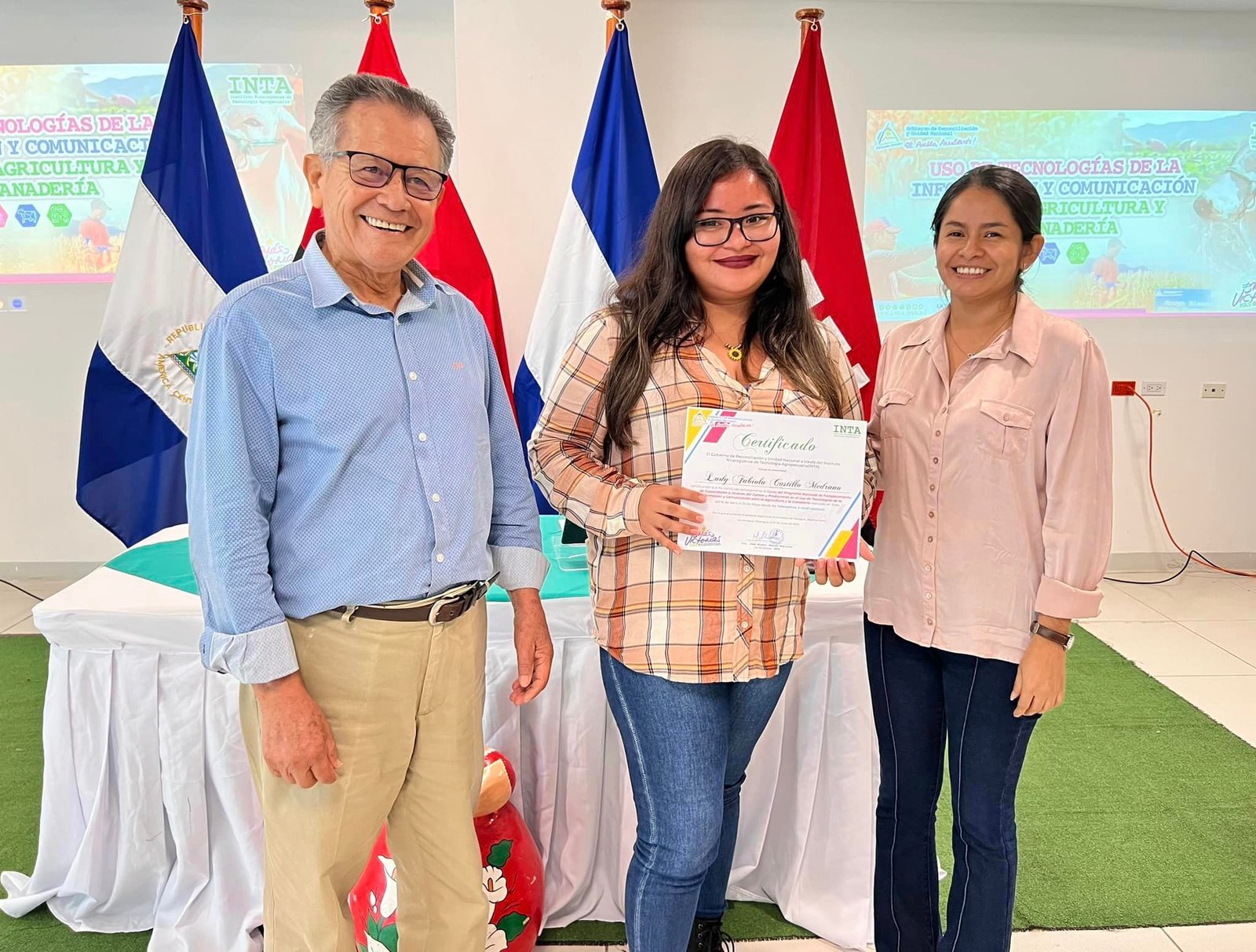 Protagonistas del Programa Nacional de Fortalecimiento de Capacidades a Jóvenes del Campo y Productores, reciben sus certificados por la culminación del Curso sobre Uso de Tecnologías de la Información y Comunicación para la Agricultura y la Ganadería desarrollado por el #INTA en todos los Telecentros a nivel nacional.