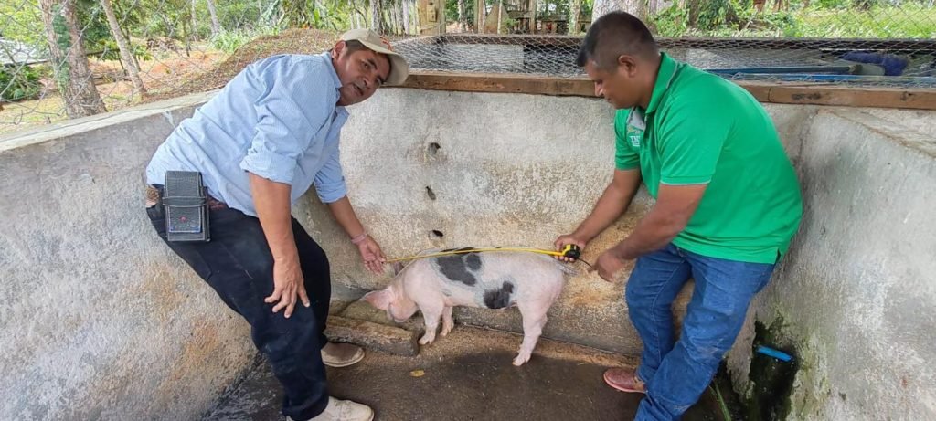 En nuestro Centro de Desarrollo de Tecnologías Agropecuarias Héroes de la Columna Jacinto Hernández, ubicado en el municipio de Nueva Guinea, realizamos encuentro con productores para presentar resultados en el engorde de cerdos, haciendo uso de alimentos concentrados, elaborados a base de harina de yuca.