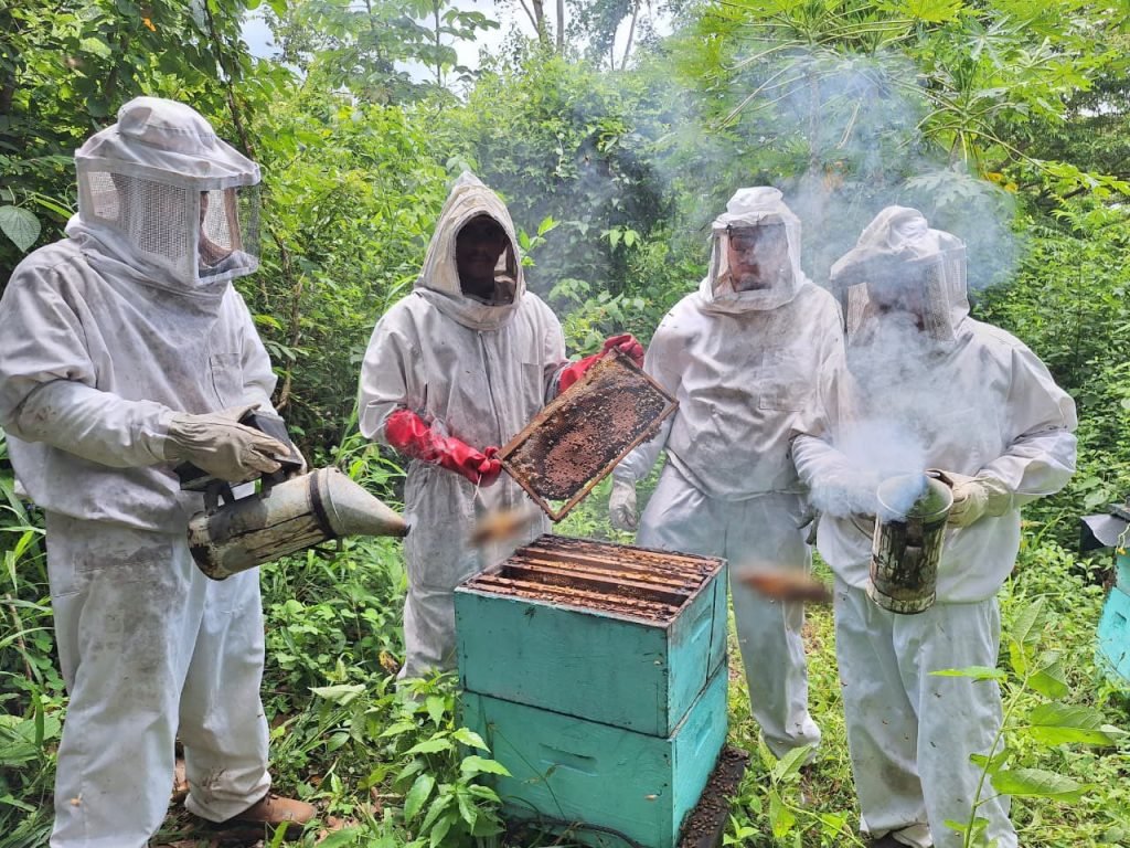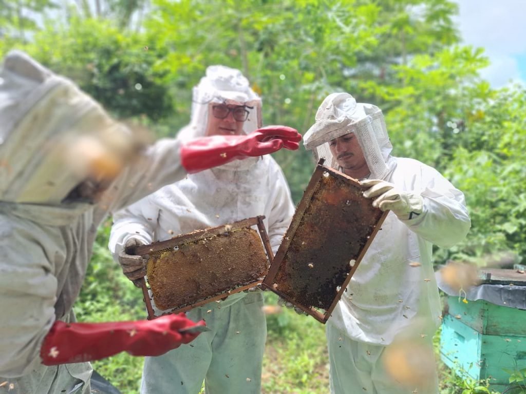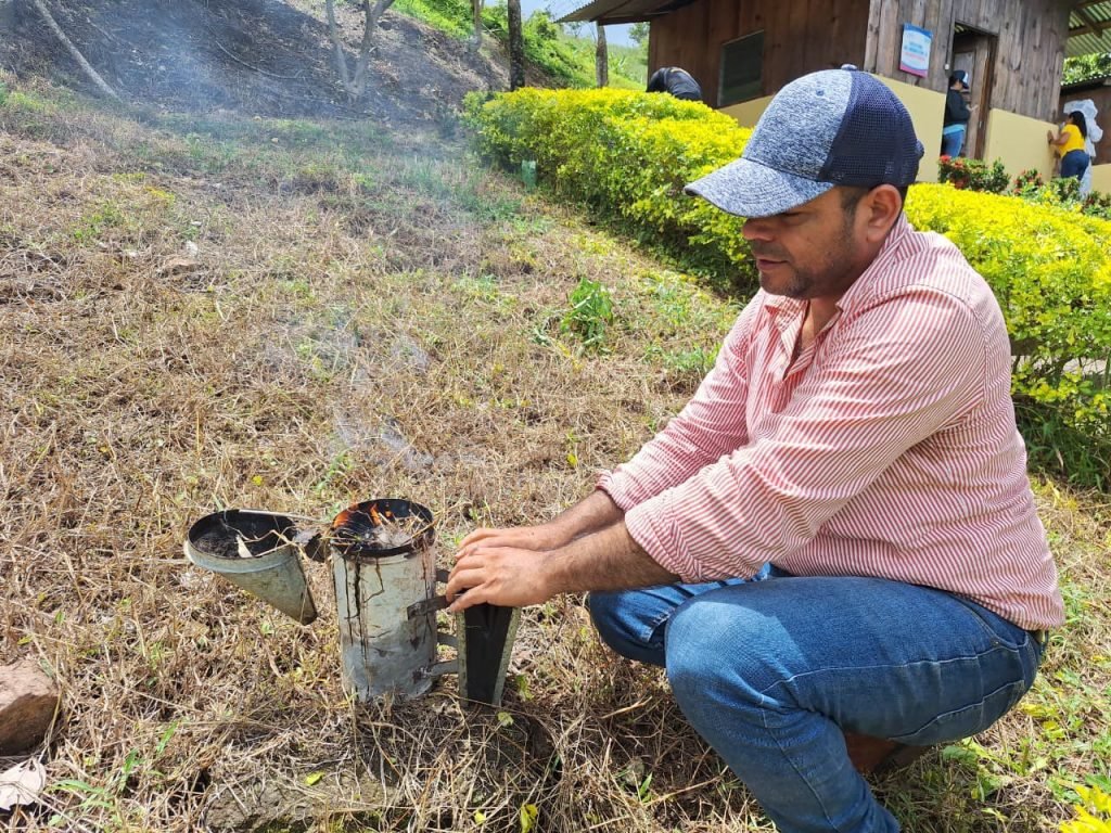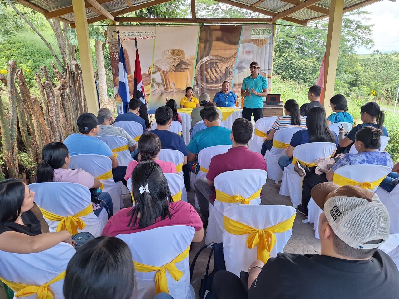 El #INTA, en la Finca de Desarrollo de Tecnologías Agropecuarias Compañero Modesto Duarte, ubicada en el municipio de Camoapa, #Boaco, realizó Encuentro con productores apícolas para presentar técnicas de monitoreo de reservas de alimentos para colmenas de abejas en período de invierno.