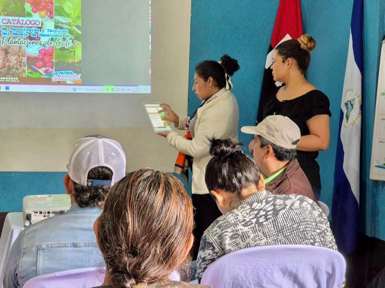 Productores sostienen Encuentro realizado por el #INTA para conocer sobre el Catálogo de Tecnologías y Técnicas del Manejo de Nemátodos en Plantaciones de Café para los departamentos de Matagalpa, Jinotega y Nueva Segovia.